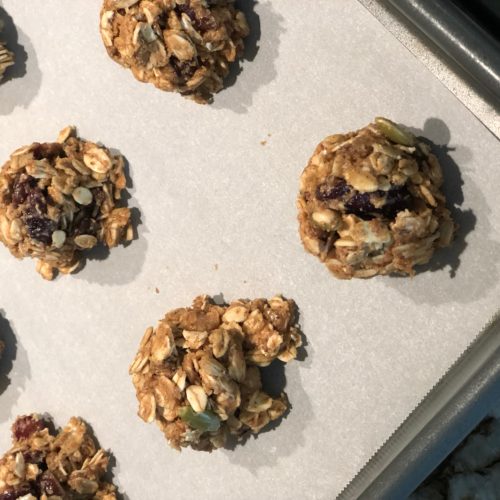 - Combine dry ingredients, and then coat well with nut butter and honey. Roll into tablespoon-sized balls or use a cookie scoop for more uniform-sized pieces. Refrigerate 45 minutes or until firm. Store in refrigerator for one week or freezer for up to 6 months.